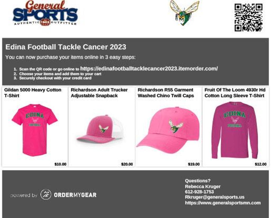 Order your Tackle Cancer swag any time up to September 18th!